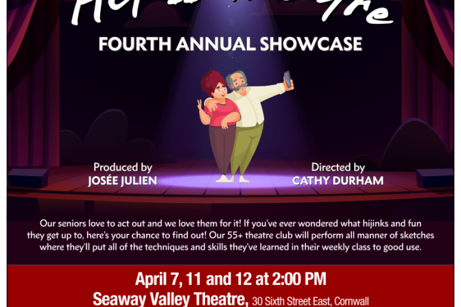 Seaway Valley Theatre, 30 Sixth Street East, Cornwall Our seniors love to act out and we love them for it! Working on technique, improv, and scene studies, our 55+ theatre club will perform all manner of skits and monologues. We encourage creating theatrical opportunities to explore the aging journey, so come watch them blossom and flourish as they find expression in the arts. […]